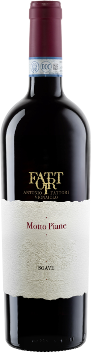 Region Description Het wijngebied Veneto (75.000 ha) grenst aan de Adriatische Zee en loopt tot aan het Gardameer en Trentino. Het is een van de belangrijkste wijngebieden van Italië in productieomvang. Verona en Venetië zijn de belangrijkste steden van het gebied. De laatste jaren is er enorm geïnvesteerd in dit wijngebied. Het klimaat houdt het midden tussen het Alpenklimaat/landklimaat en het Middellandse Zee klimaat. De soms vulkanische bodem bestaat uit rode en bruine gronden op gruis, ook mergel en basalt. Wijnbouw in dit deel van Italië is al zeer oud en gaat terug tot vóór de jaartelling. 75% van de wijnen is wit. Soave is een groot wijngebied ten oosten van de stad Verona. In de vlakkere delen wordt de basis Soave gemaakt, terwijl de Soave Classico, slechts een kwart van de totale productie, gewonnen wordt op de heuvels rondom het dorp Soave. De basisdruif is de garganega (klemtoon op de 2e lettergreep), volgens de wet minstens 70%, veelal aangevuld met de trebbiano di soave, een kwaliteitsdruif druif sterk verwant aan de verdicchio, en dus niet te verwarren met de matige trebbiano di Toscana. Sinds 1993 mag naast trebbiano ook pinot bianco, pinot grigio of chardonnay toegevoegd worden. Moderne Soave’s ondergaan, zeker als chardonnay gebruikt wordt, vaak rijping op eiken vaten. Motto Piane is de naam van de wijngaard van 3,9 ha. gelegen rondom het huis van Antonio Fattori op de Monte Calvarina op zo’n 250-300 meter hoogte. De stokken zijn gemiddeld 30 jaar oud en staan op vulkanische bodem.